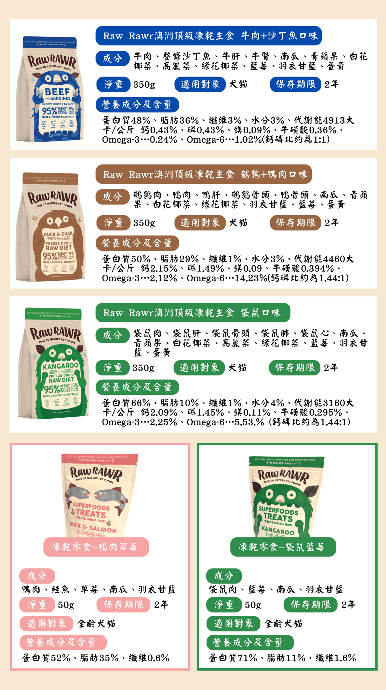 Raw RAWR凍乾零食-鴨肉鮭魚草莓